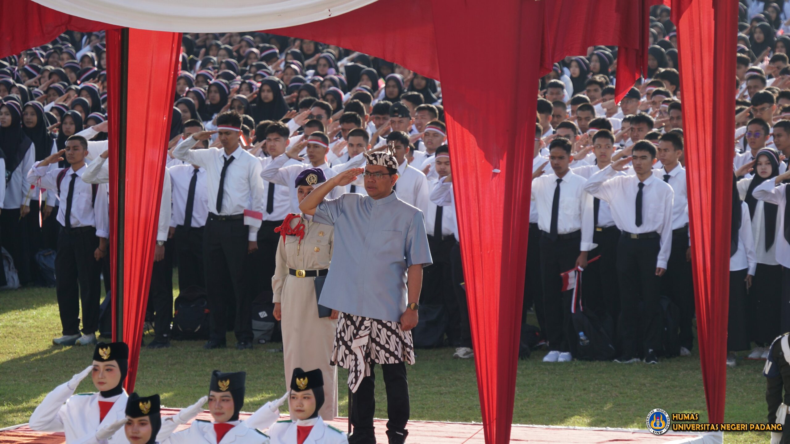 Upacara peringatan HUT ke-80 RI di UNP tahun ini berlangsung meriah sekaligus khidmat. Kehadiran lebih dari 12 ribu mahasiswa baru menambah semangat kebersamaan dan menjadi bukti bahwa kampus sebagai pusat pendidikan tidak hanya mencetak insan cendekia, tetapi juga membangun karakter bangsa yang berintegritas dan berjiwa nasionalis. (Utr/Humas UNP)