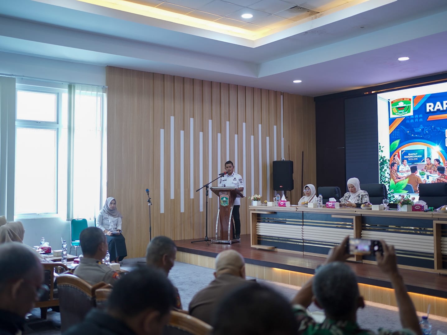Rakor tersebut dibuka langsung oleh Bupati Solok, Dr. (HC) Jon Firman Pandu, SH, dan turut dihadiri Ketua TP-PKK Kabupaten Solok Ny. Nia Jon Firman Pandu, Kepala BPS Kabupaten Solok Bambang Suryanggono, SST, M.Ec.Dev., Asisten I Pemerintahan dan Kesra Setda Kabupaten Solok Drs. Zaitul Ikhlas, AP, M.Si., unsur Forkopimda, Kepala Dinas Sosial Ir. Desmalia Ramadhanur, para Kepala OPD, camat, serta wali nagari se-Kabupaten Solok.