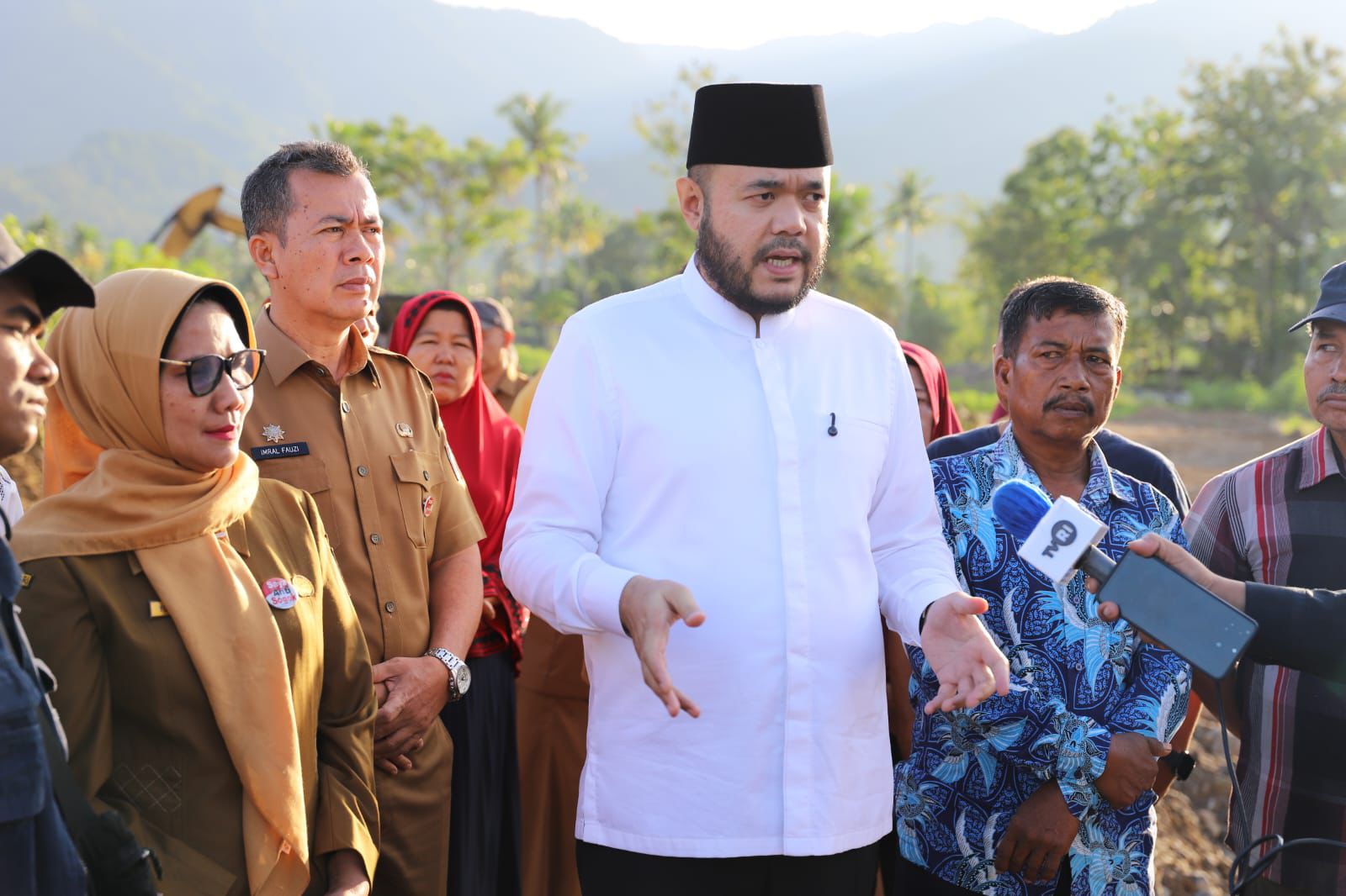 Fadly Amran melihat progres pekerjaan yang telah mulai dilaksanakan oleh masyarakat setempat dengan dukungan alat berat serta gotong royong (goro) warga.