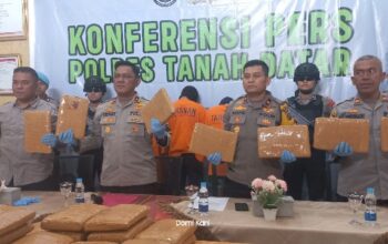 Hal tersebut disampaikan oleh Kapolres Tanah Datar AKBP Nur Ichsan Dwi Septianto, SH. SIK .MIK yang didampingi Wakapolres Yulandi, SH , KabagOps Kompol Nofri, SH. MH , Kasatnarkoba AKP M. Arvi SH pada Konfrensi Pers yang digelar pada Senin (28/4) di Mapolres setempat.