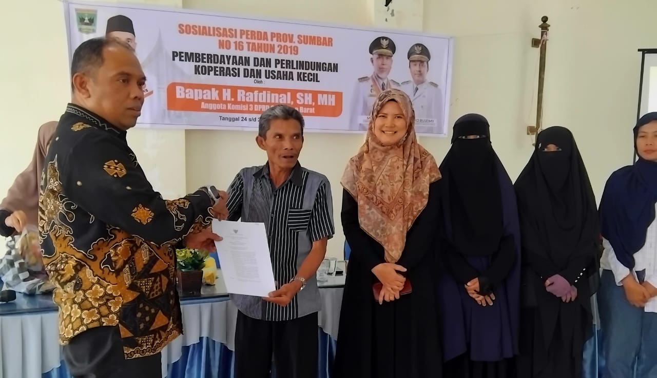 Agam,relasipublik – Anggota Komisi III DPRD Sumatera Barat, H. Rafdinal, menggelar Sosialisasi Peraturan Daerah (Perda) Nomor 16 Tahun 2019 tentang Pemberdayaan dan Perlindungan Koperasi serta Usaha Kecil di Aula Camat Banuhampu, Kabupaten Agam, Sabtu (25/10/2025). Kegiatan ini bertujuan meningkatkan pemahaman pelaku usaha terhadap kebijakan daerah dan memperkuat daya saing ekonomi masyarakat.