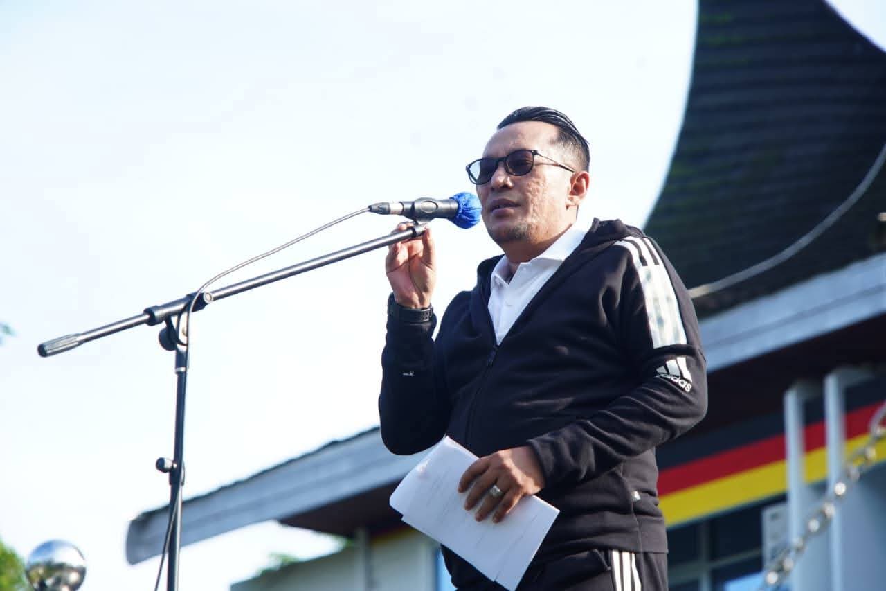 Bupati Tanah Datar Eka Putra memimpin Apel Gabungan dalam Rangka Peringatan World Clean Up Day (WCD) Tahun 2025 di halaman kantor Bupati di Pagaruyung, Jum’at (3/10/2025).