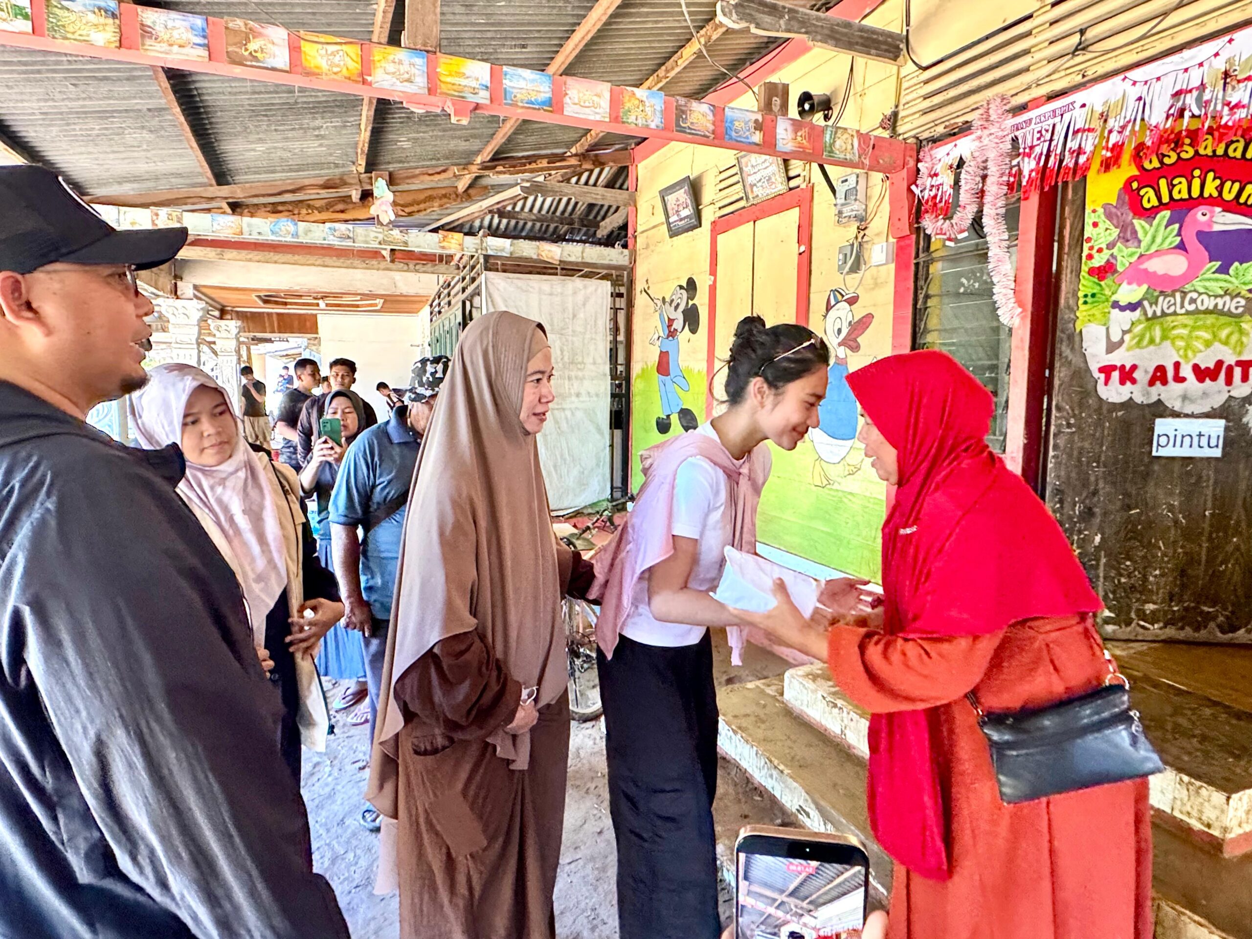 Kedatangan Azizah didampingi Andre Rosiade dan istrinya, Nurul Anastasia. Ia mengaku tersentuh setelah mendengar kisah perjuangan Yulimar (68), pengelola TK sekaligus pemimpin Yayasan Rumah Pendidikan Anak, yang bangunan sekolahnya rusak berat diterjang banjir bandang. Meski tidak ambruk total, kondisi gedung tak lagi layak digunakan.
