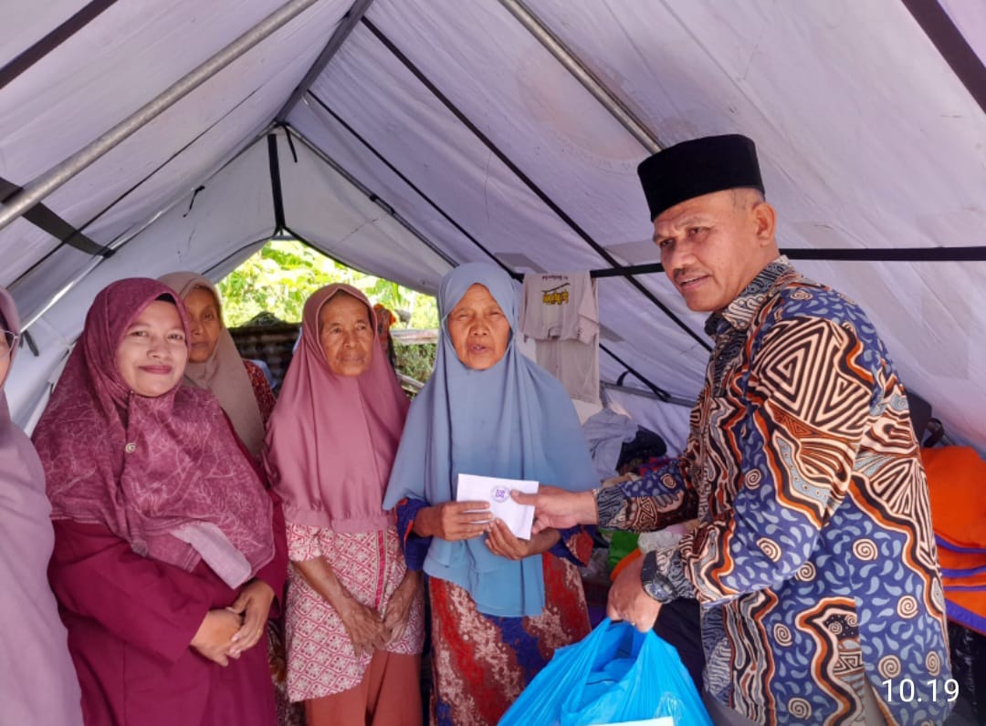 Ketua BKMT Kota Padang Panjang, Dr. Asrizallis, S.Sos, M.Pd.I, MM, MH, M.Sn, M.Si, M.Sos secara langsung menyerahkan bantuan kepada dua korban kebakaran, yakni Yasmi dan Murni.