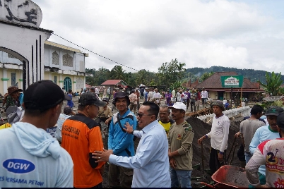 Bupati Tanah Datar, Eka Putra, turun langsung bergotong royong bersama masyarakat dalam pembangunan halaman dan lahan parkir Masjid Nurul Falah di Jorong Baruah Bukik, Nagari Andaleh, Senin (16/2). Kegiatan ini menjadi bagian dari persiapan menyambut Ramadan 1447 Hijriah.