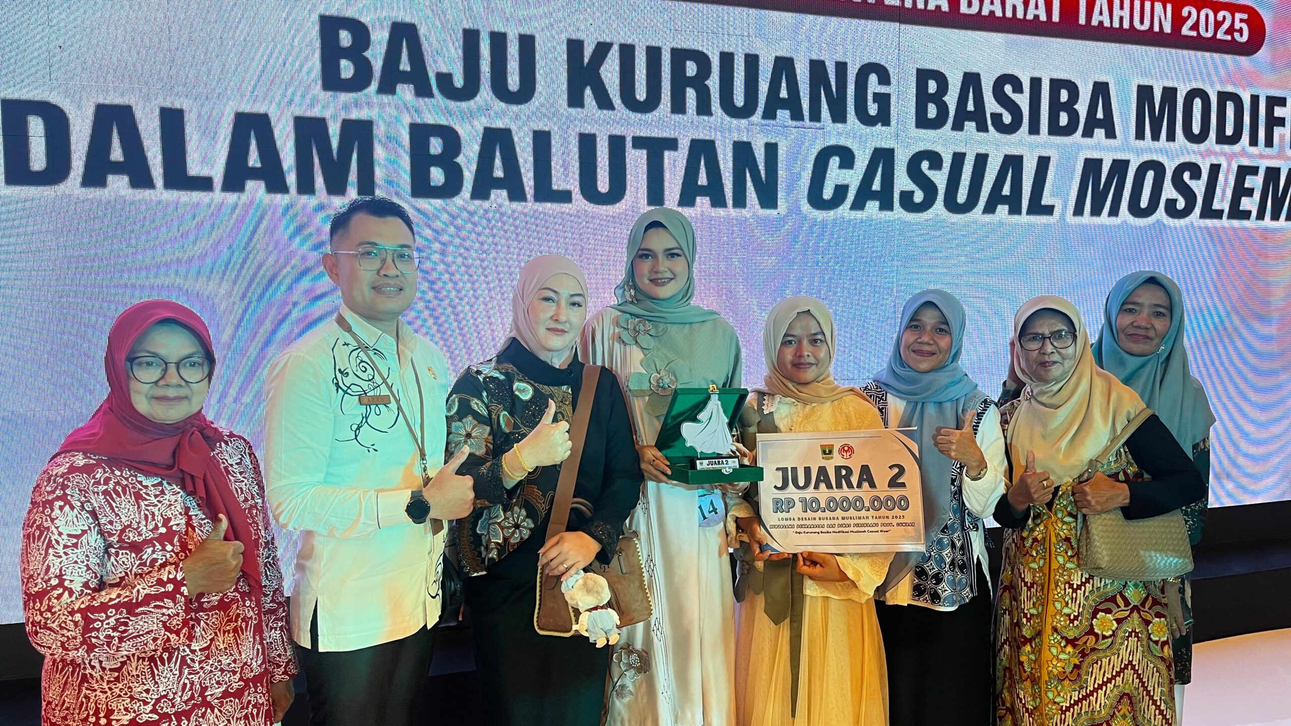 PADANG, RELASIPUBLIK.com – Desainer muda asal Kota Padang Panjang, Miftahul Rizki berhasil meraih juara II dalam ajang Lomba Desain Busana Muslimah “Baju Kurung Basiba Modifikasi dalam Balutan Casual Moslem” se-Sumatera Barat yang berlangsung di Pangeran Beach Hotel, Padang, Rabu (5/11/2025).