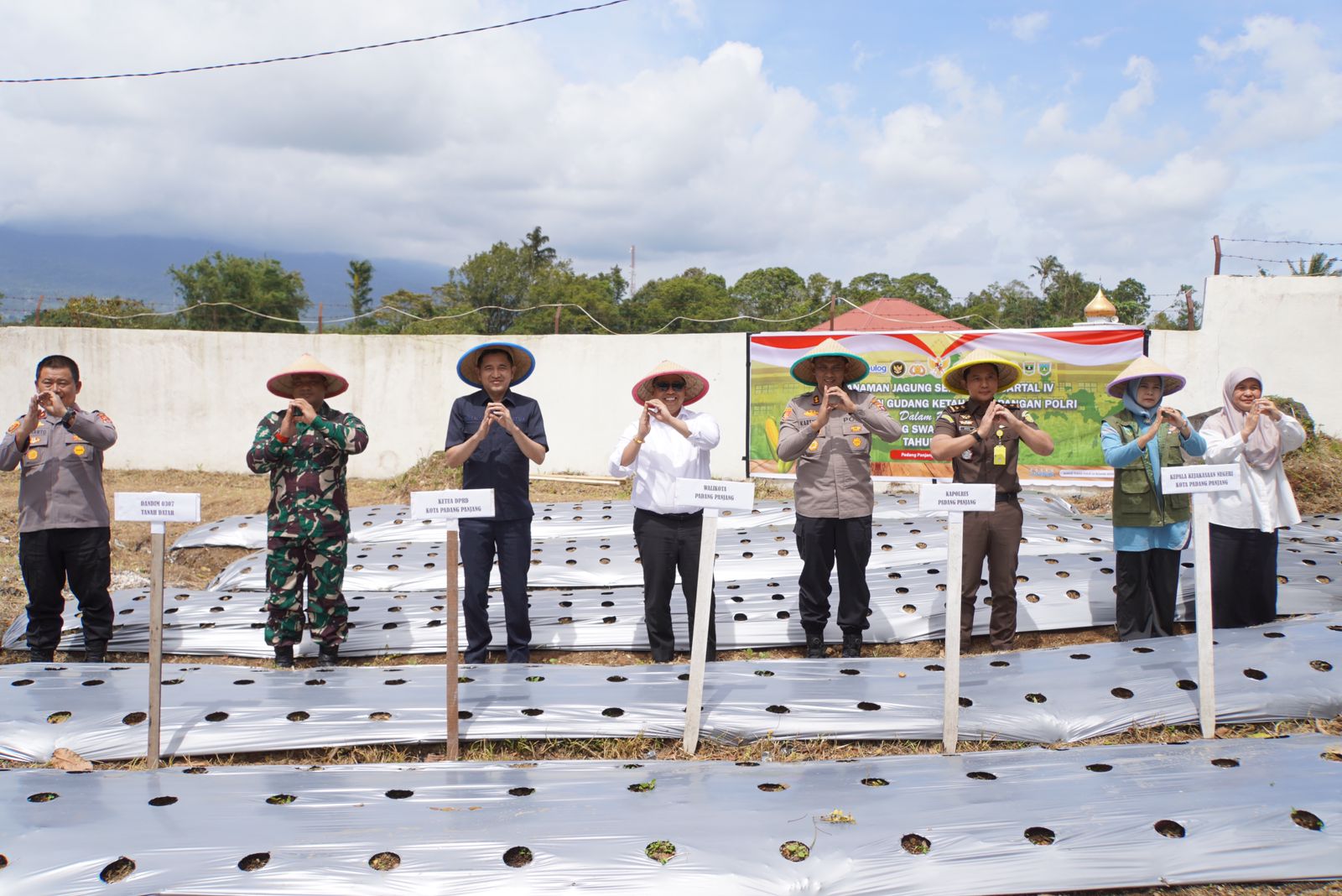 Usai sambutan, Forkopimda melakukan penanaman bibit jagung secara simbolis. Acara kemudian dilanjutkan dengan peresmian Gudang Ketahanan Pangan Polri yang akan difungsikan untuk penyimpanan hasil panen serta logistik pertanian binaan Polres.