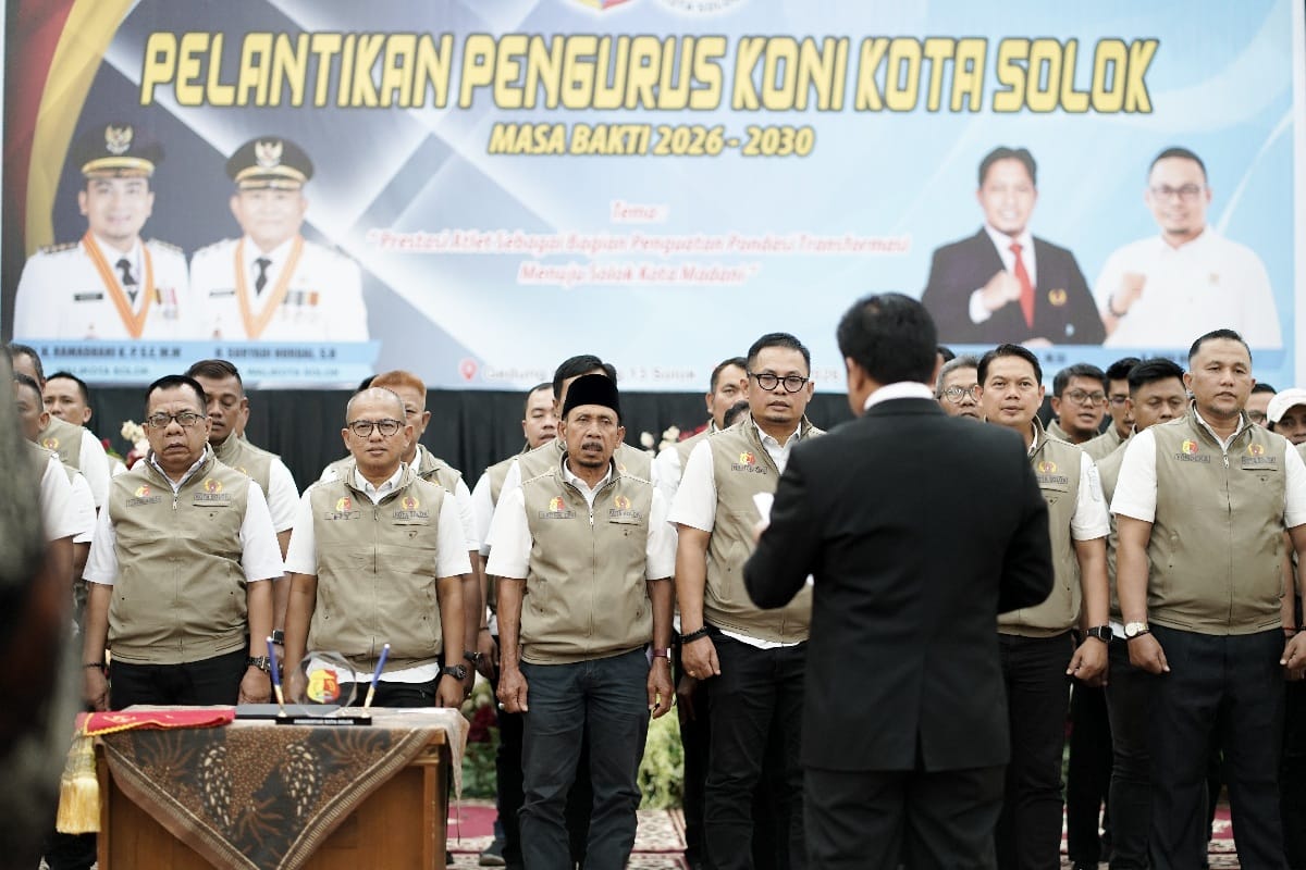 Foto: Pelantikan pengurus KONI Kota Solok periode 2026-2030 dihadiri pengurus KONI Sumbar dan Walikota Solok Ramadhani Kirana Putra. (dok foto istimewa