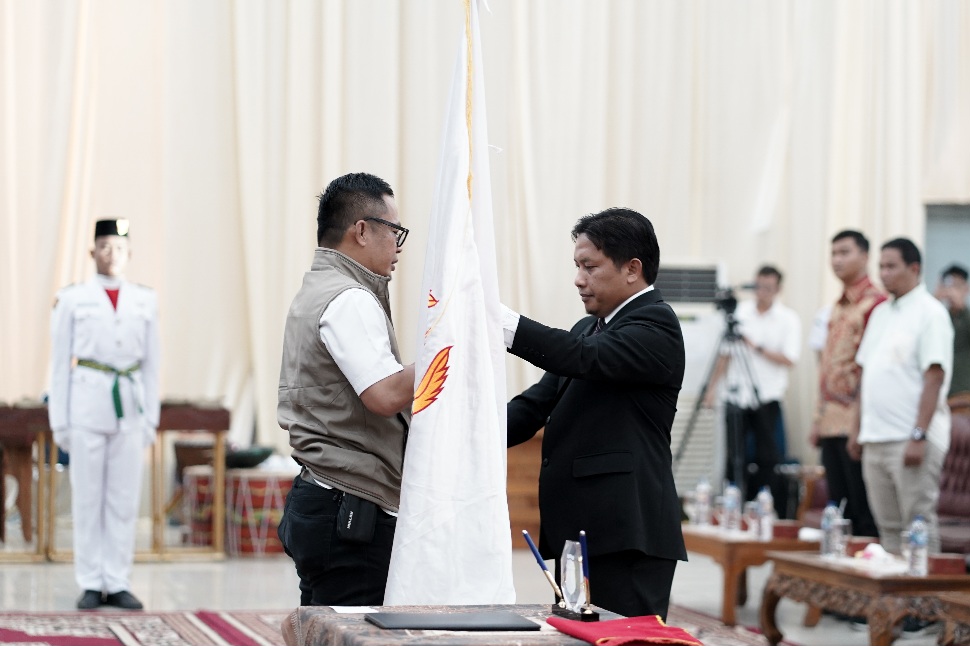 Foto: Ketua umum KONI kota Solok H. Rudi Horizon menerima pataka dari Ketua KONI Sumbar Hamdanus (dok istimewa)