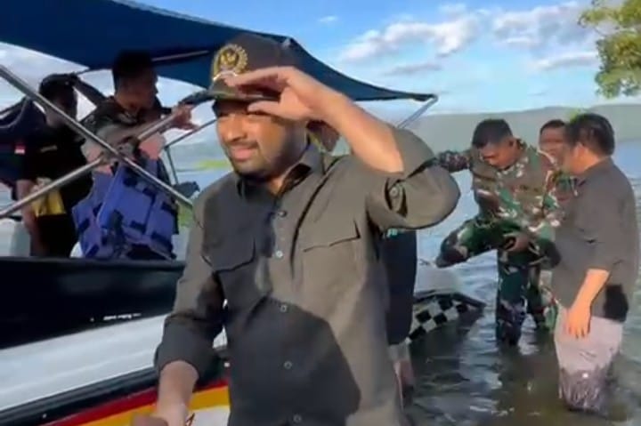 SOLOK,RELASIPUBLIK–Anggota Komisi V DPR RI Zigo Rolanda meninjau titik banjir di Saniang Baka, Muaro Pingai, dan Paninggahan pada Sabtu, (29/11/2025). Tiga wilayah itu masih terisolasi akibat arus banjir yang memutus jalur darat. Kondisi itu membuat pihak terkait mengandalkan jalur air untuk menjangkau warga.