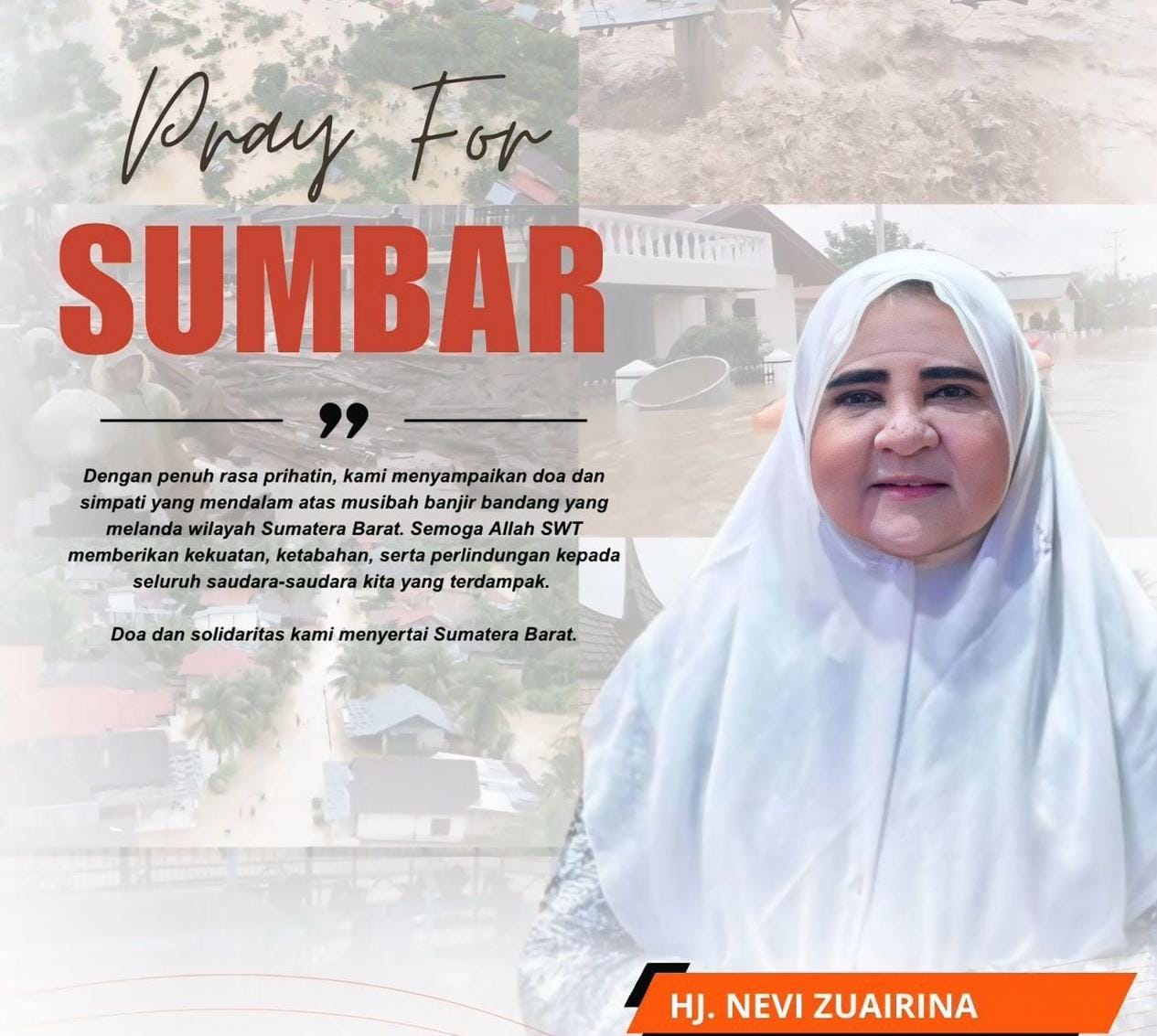 Padang,relasipublik — Ketua Pimpinan Wilayah ALPPIND Sumatera Barat sekaligus Anggota DPR RI Komisi VI dari Fraksi PKS, Hj. Nevi Zuairina, menyampaikan rasa duka yang mendalam dan keprihatinan atas musibah banjir bandang yang melanda sejumlah wilayah di Sumatera termasuk di Sumatera Barat. Bencana ini telah menimbulkan korban jiwa, kerusakan infrastruktur, serta mengganggu aktivitas sosial dan ekonomi masyarakat di berbagai daerah.