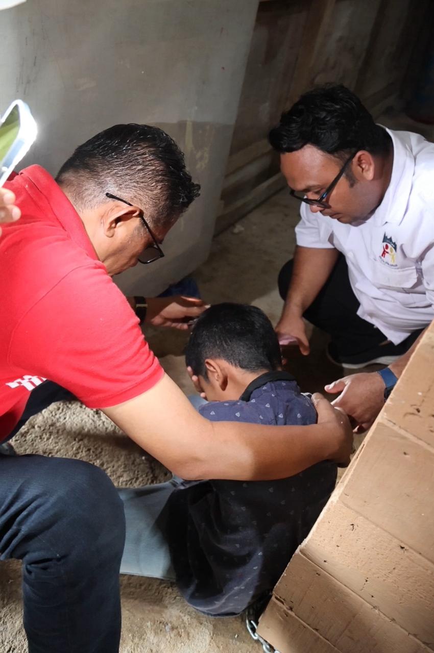 Saat Evi Yandri dan YPJI menjemput Faliq di rumah orangtuanya di Pasar Lalang, Kuranj, Faliq dalam keadaan dirantai.