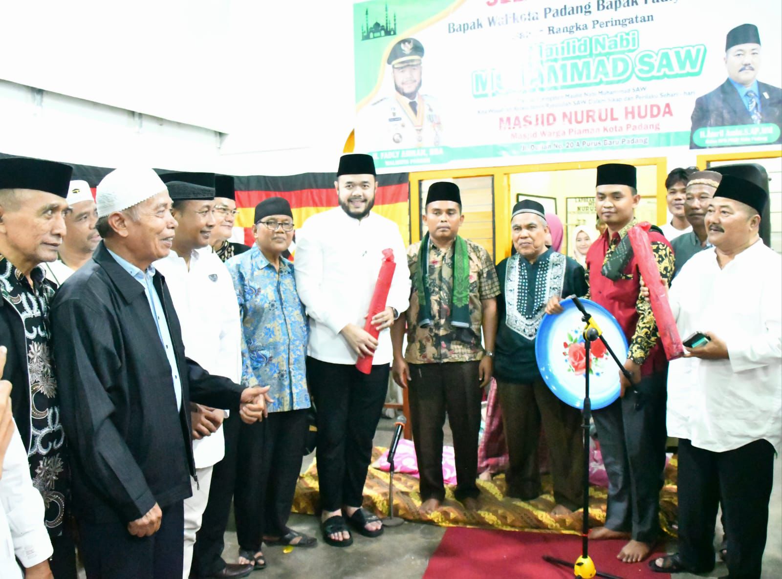 Padang,relasipublik – Wali Kota Padang, Fadly Amran, menghadiri acara Peringatan Maulid Nabi Muhammad SAW yang digelar keluarga besar Dewan Pimpinan Daerah (DPD) Persatuan Keluarga Daerah Piaman (PKDP) Kota Padang, di Masjid Nurul Huda Purus Baru, Kelurahan Ujung Gurun, Kecamatan Padang Barat, Sabtu (20/9/2025) malam.