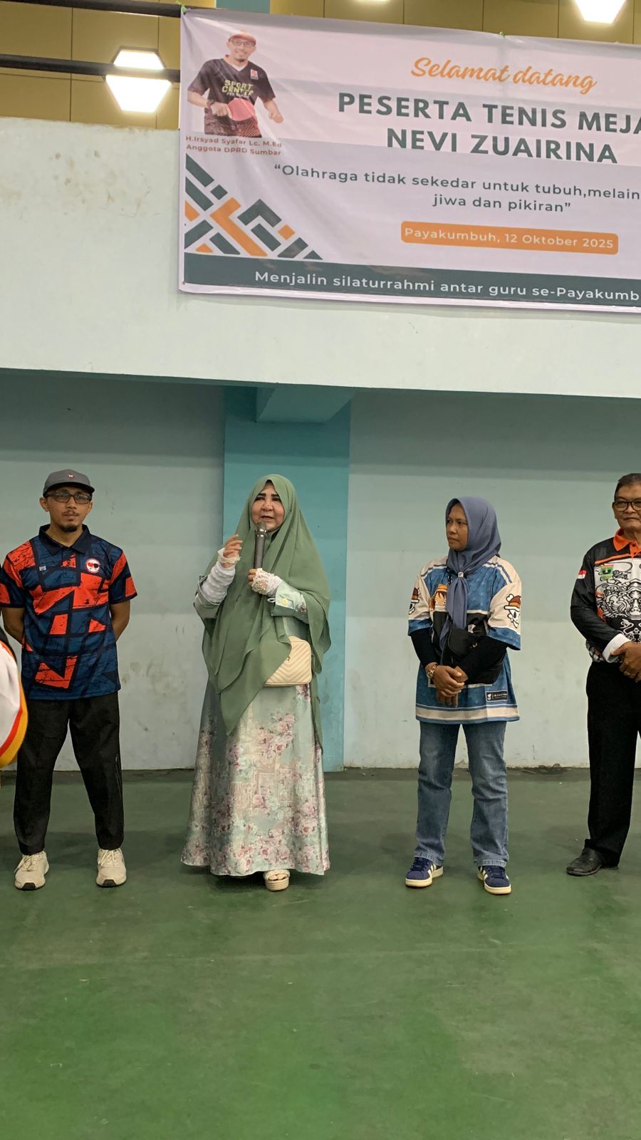 Payakumbuh,relasipublik — Anggota DPR RI Fraksi PKS, Hj. Nevi Zuairina, membersamaii turnamen tenis meja antar guru se-Payakumbuh dan Kabupaten 50 Kota. Kegiatan yang berlangsung penuh semangat ini mengusung tema