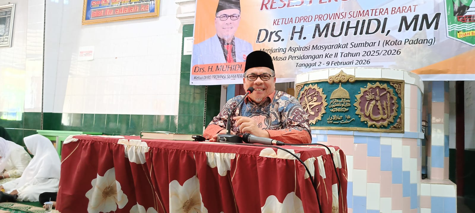 Penegasan tersebut disampaikan Ketua DPRD Provinsi Sumatera Barat, Muhidi saat melaksanakan reses di Masjid Al Kausar, Air Camar, Kelurahan Parak Gadang, Kecamatan Kuranji, Kota Padang, Sabtu (7/2).