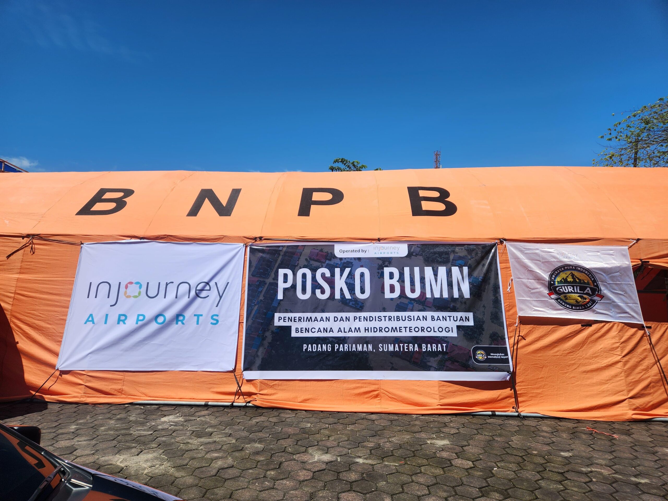Sebagai langkah strategis, Injourney Airports mendirikan Posko BUMN Tanggap Bencana di gerbang masuk Bandara Internasional Minangkabau. Posko ini berfungsi sebagai pusat komando koordinasi, penerimaan, serta pendistribusian bantuan dari seluruh BUMN kepada masyarakat terdampak.