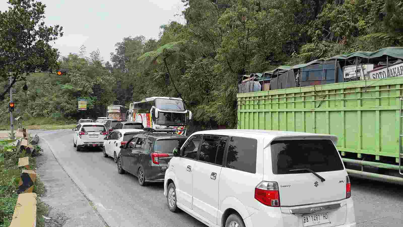 Kondisi ini membuat laju kendaraan tersendat di sejumlah titik, terutama pada tanjakan dan tikungan ekstrem yang menjadi ciri khas jalur Sitinjau Laut.