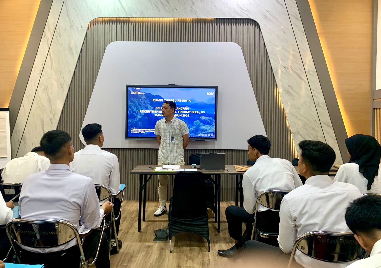 Kepala Humas KAI Divre II Sumbar, Reza Shahab mengatakan bahwa registrasi rekrutmen eksternal tingkat SLTA, D3, dan D4/S1 Tahun 2025 yang dibuka pada 30 Agustus hingga 1 September 2025 yang lalu melalui laman resmi https://e-recruitment.kai.id, kini masuk tahap seleksi wawancara yang dilaksanakan mulai hari Senin-Jum’at (10-14 November 2025) di kantor Divre II Sumbar. “Seluruh proses seleksi akan dilaksanakan di Kantor Divre II Sumbar dengan pengawasan ketat untuk menjamin transparansi dan integritas” ujar Reza.