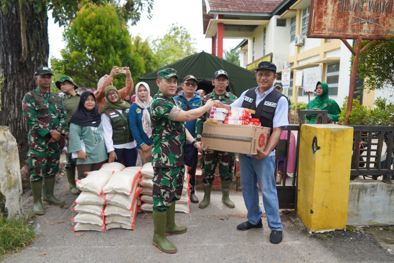 Kepala Staf Korem 032/Wirabraja (Kasrem) Kolonel Inf Dedi Iswanto, S.I.P., didampingi Kepala Seksi intelijen Kasrem 032/Wbr Kolonel Arm Farid Hidayat, mengatakan bantuan yang disalurkan mulai dari perahu karet,bahan makanan, keperluan di pengungsian seperti tikar, makanan bayi ,kebutuhan ibu hamil. kebutuhan dasar dan darurat, seperti tenda, genset, selimut, mie instan, beras, popok bayi, bubur bayi, tikar, dan air mineral.