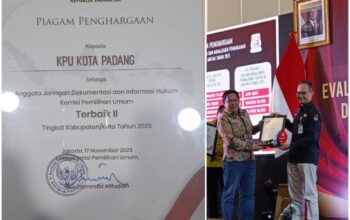 Padang,-Komisi Pemilihan Umum (KPU) Kota Padang kembali raih penghargaan peringkat satu sebagai Badan Publik Informatif untuk kategori KPU Kabupaten dan Kota Padang Malam Anugrah Keterbukaan Informasi Sumatera Barat pada Selasa 18 November 2025.