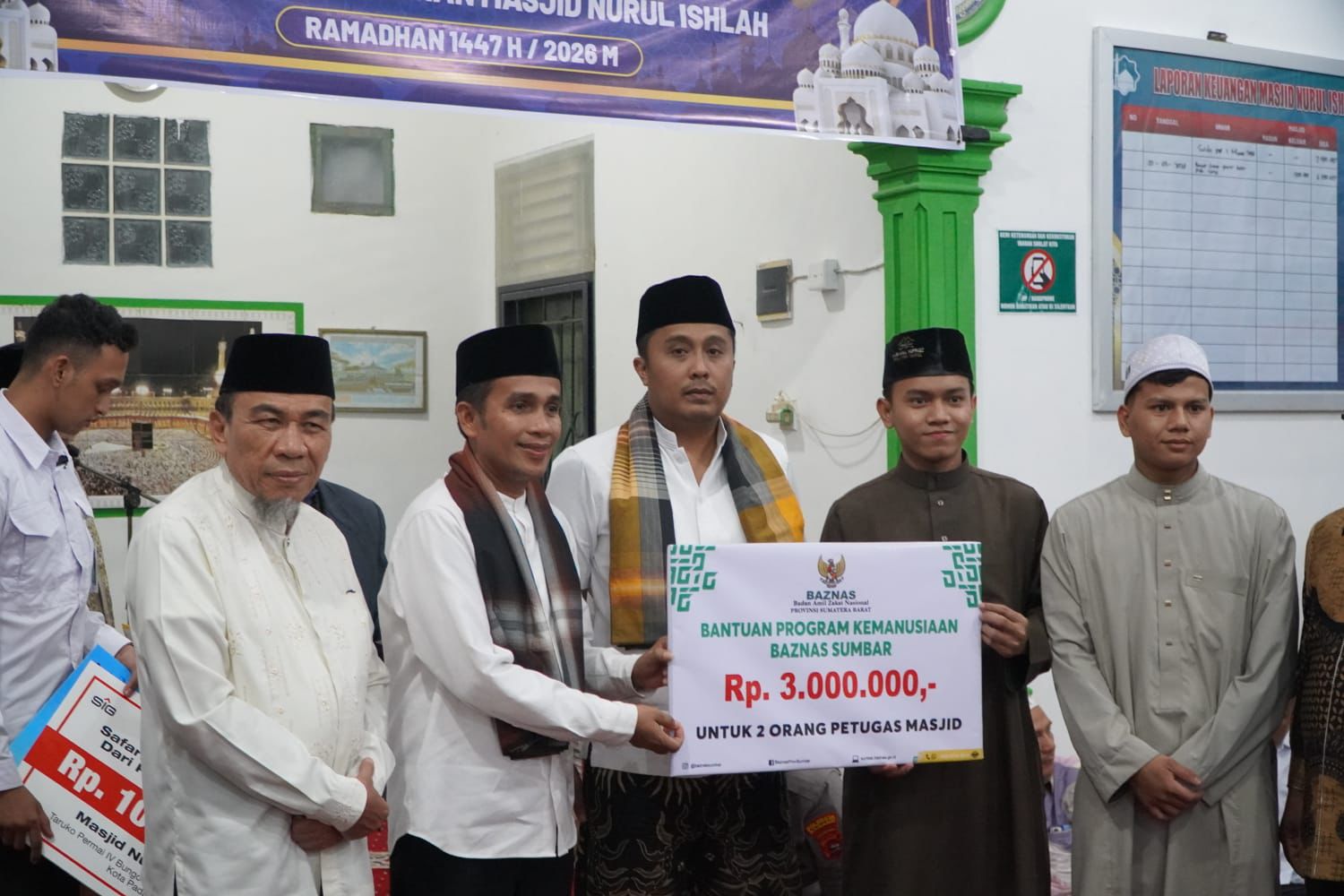 Dalam kesempatan tersebut, Tim Safari Ramadan Pemprov Sumbar juga menyerahkan bantuan hibah Safari Ramadan sebesar Rp50 juta disertai 40 mushaf Alquran untuk masjid setempat.