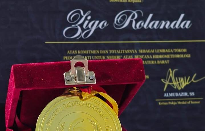 “Beberapa hari yang lalu, saya menerima penghargaan dari Jaringan Pemred Sumatera Barat. Penghargaan ini menjadi bentuk apresiasi atas komitmen dan kepedulian dalam ‘Bakti untuk Negeri’, khususnya dalam merespons bencana hidrometeorologi yang melanda Sumatera Barat,” ujar Zigo.