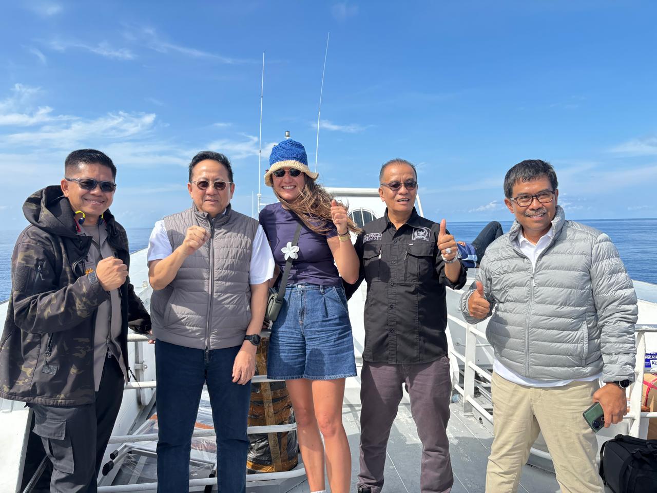 Anggota DPD RI Irman Gusman dan rombongan berfoto bersama Kapolres Mentawai, serta wisatawan di dek kapal, Rabu (15/10/2025).