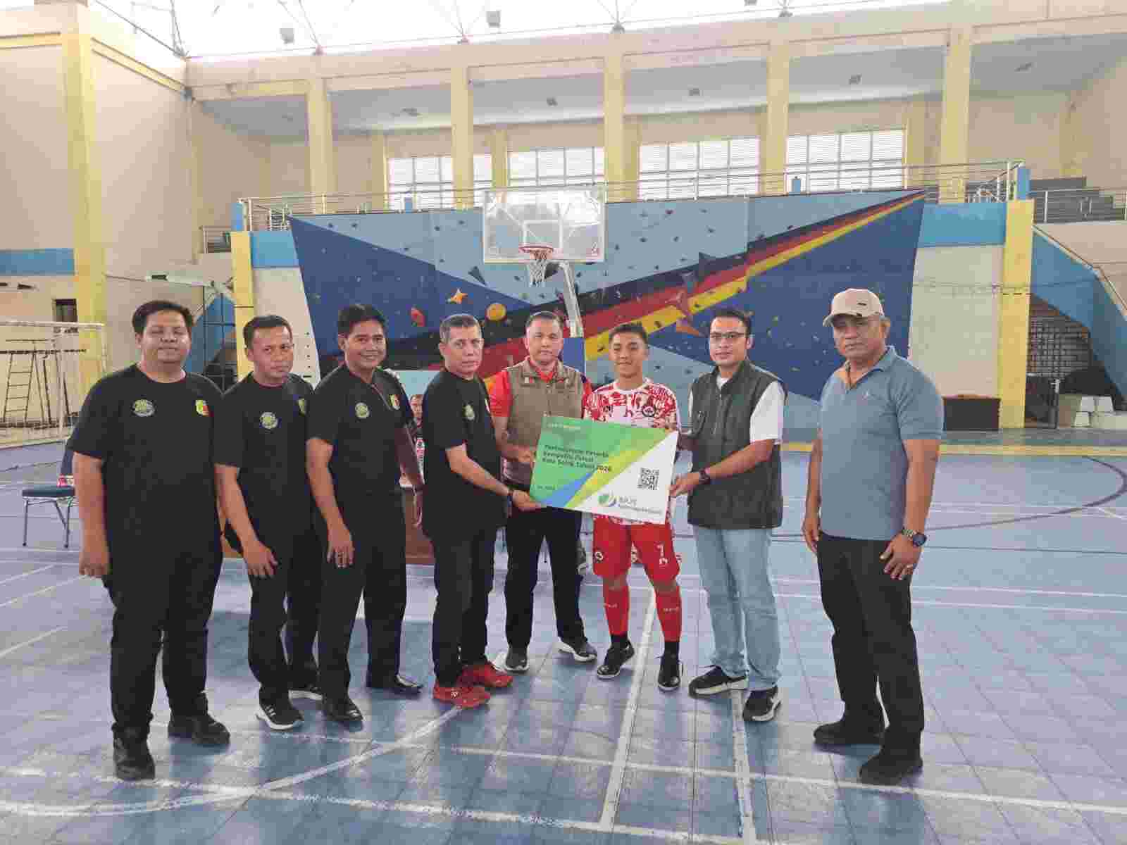 Foto : Penyerahan secara sombolis BPJS Ketenagakerjaan kepada peserta Liga AFKOT Solok (dok istimewa)