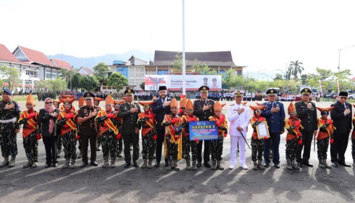Para Polisi Cilik yang berhasil merebut gelar juara Harapan III pada lomba Polisi Cilik tingkat Sumbar 2025 itu juga menampilkan sejumlah tarian dengan iringan musik Minang-Timur yang menghibur para peserta upacara.
