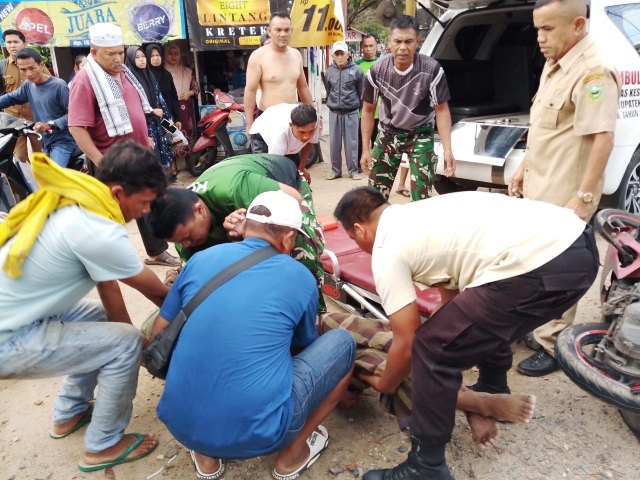 Warga sekitar yang melihat kejadian langsung bergegas memberikan pertolongan pertama.
