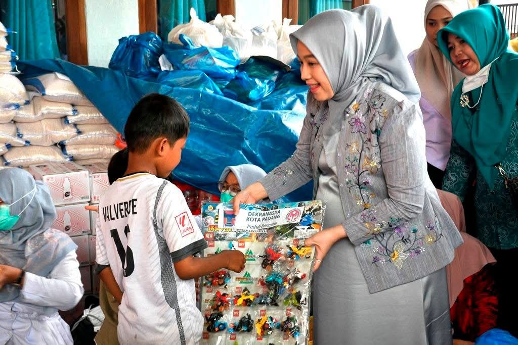 Padang,relasipublik – Setelah Pasca Banjir Bandang menghadang Posko Bencana di Guo, Kecamatan Kuranji, Kota Padang nampak berbeda dari biasa pada Rabu siang (3/12/2025). Anak-anak riuh bergembira. Pasalnya, Ketua Dekranasda Kota Padang, Ny Dian Puspita Fadly Amran datang membawa mainan.