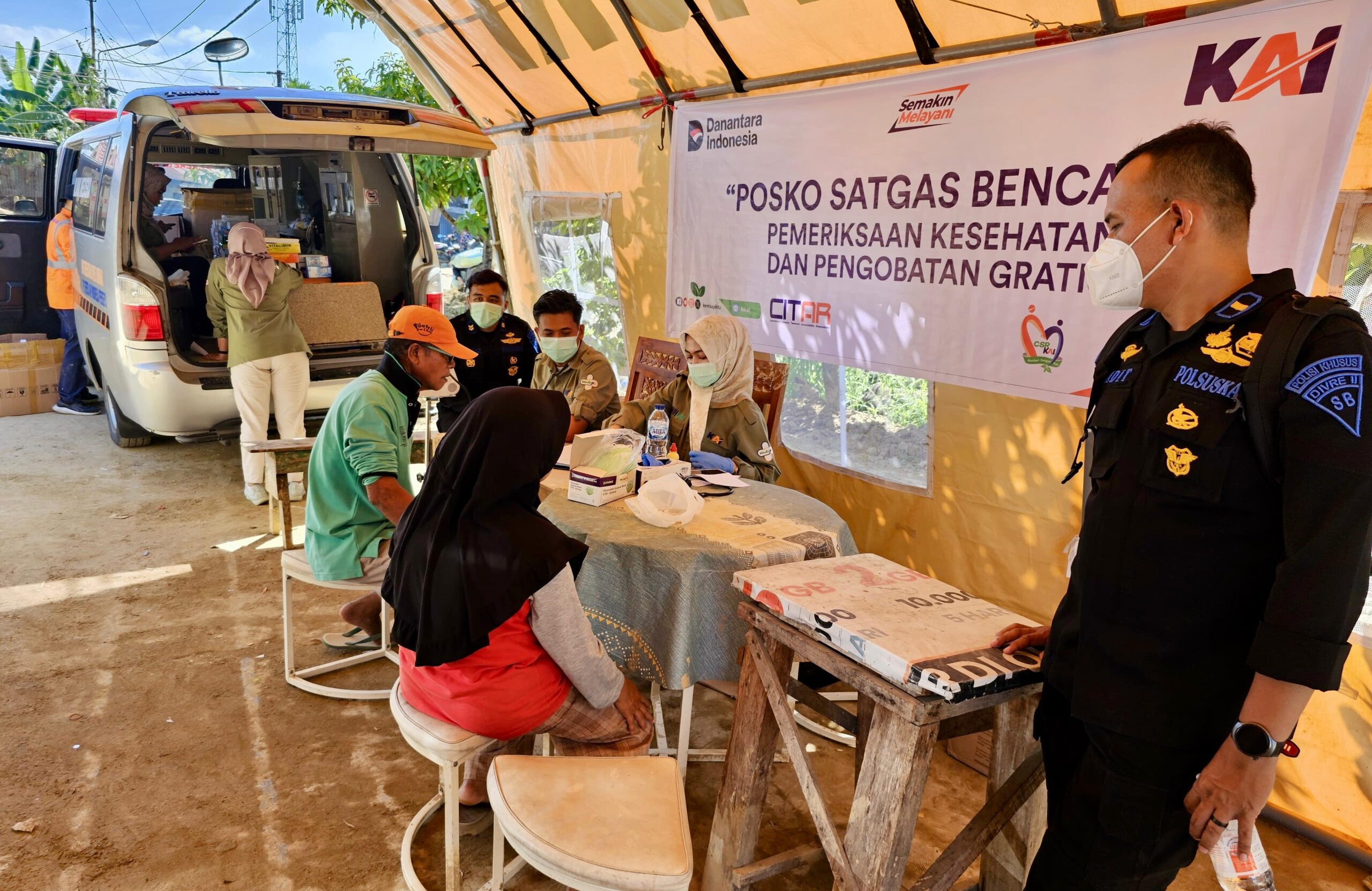 Layanan kesehatan yang diberikan meliputi pemeriksaan tekanan darah, pengecekan kolesterol, gula darah, dan asam urat, serta pengobatan gratis. Seluruh warga yang terdampak banjir dapat memanfaatkan fasilitas ini tanpa syarat apa pun.