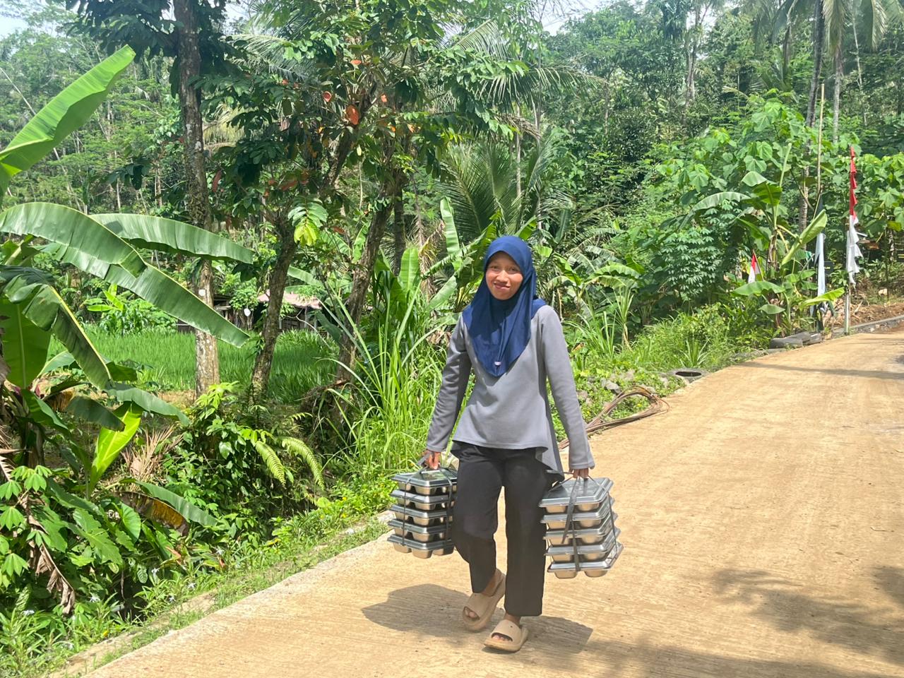 Dengan medan yang tidak mudah, ia bersama kader lainnya bahkan sopir pengantar kerap harus berjuang melewati jalan yang sulit untuk menjangkau rumah warga. Kondisi jalan yang belum layak dan sempit membuat distribusi MBG menjadi tantangan tersendiri.
