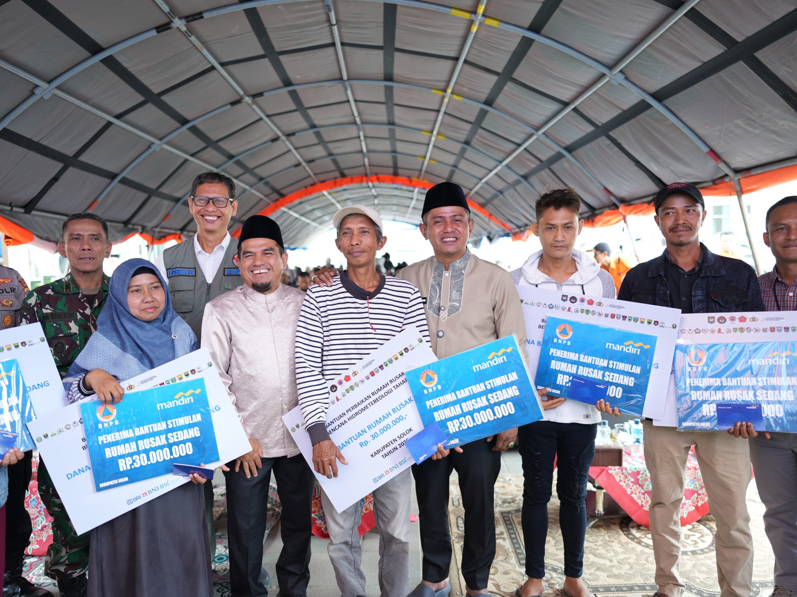 Adapun jumlah bantuan yang disalurkan untuk bantuan perbaikan rumah rusak tahap I sebesar Rp. 1. 710.000.000,- dengan rincian rusak ringan untuk 72 KK dengan anggaran Rp. 1.080.000.000,- dan rusak sedang dengan anggaran Rp. 630.000.000-. Bantuan perbaikan untuk masing-masing rumah rusak ringan Rp. 15.000.000/KK dan yang untuk rusak sedang sebesar Rp. 30.000.000/KK. Dan seluruh penerima bantuan akan disalurkan melalui rekening masing- masing melalui Bank Mandiri Cabang Solok. Selain itu, masyarakat juga menerima bantuan logistik berupa paket sembako, selimut, tikar, serta kebutuhan harian lainnya.