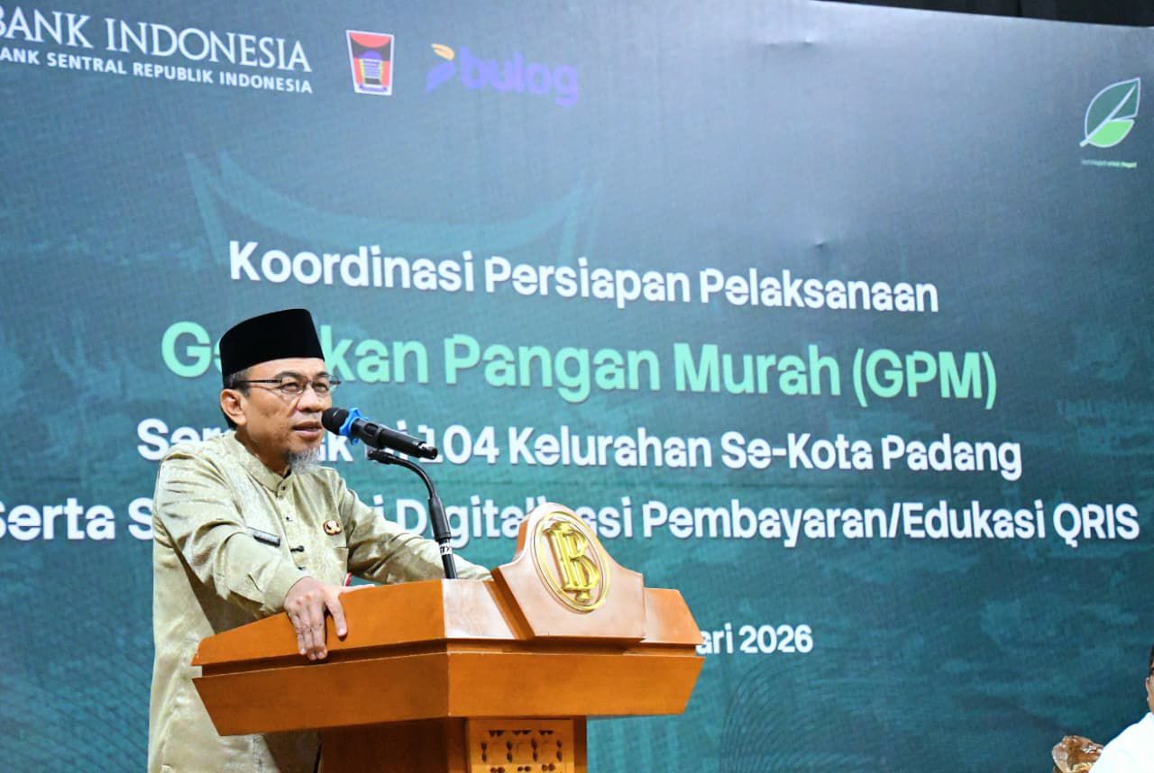 Komitmen tersebut disampaikan Wakil Wali Kota Padang, Maigus Nasir, dalam Rapat Koordinasi Persiapan GPM yang diikuti camat dan lurah se-Kota Padang di Aula Anggun Nan Tongga Kantor Perwakilan Bank Indonesia (BI) Provinsi Sumatera Barat (Sumbar), Senin (23/2/2026).