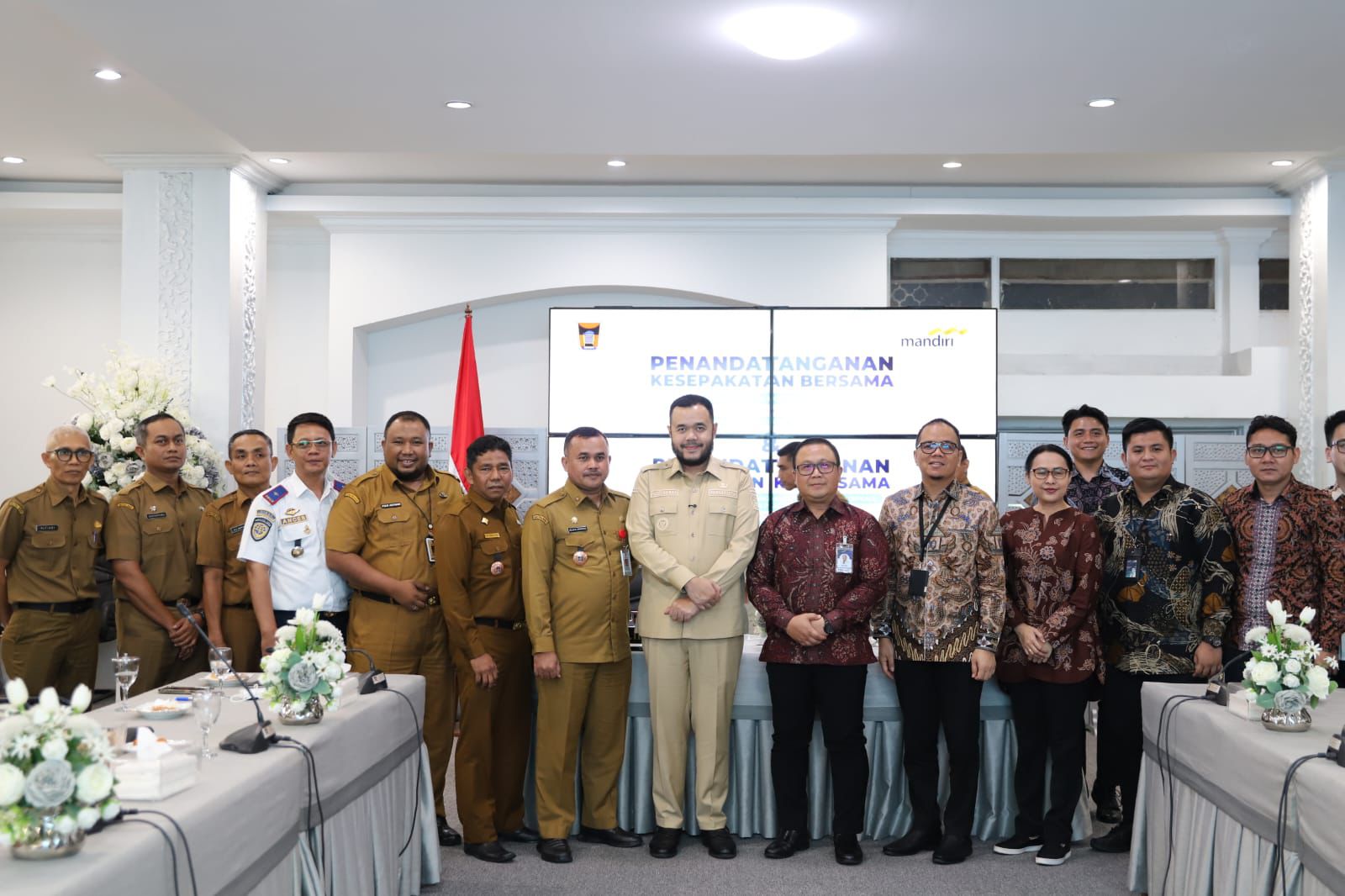 Turut dilaksanakan penandatanganan perjanjian kerja sama antara Badan Pengelolaan Keuangan dan Aset Daerah (BPKAD) Kota Padang dengan PT Bank Mandiri (Persero) Tbk Cabang Taman Melati terkait pengelolaan dan penatausahaan kas umum daerah Kota Padang.