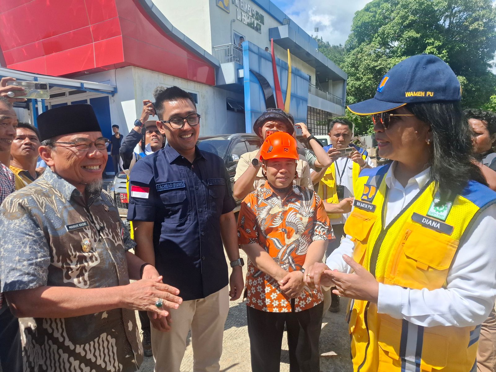 Diana mengatakan hari ini Kementerian PU menyerahkan bantuan 260 batang pipa IPA dengan panjang 6 meter, untuk mengcover 1.560 m panjang jaringan Perumda AM.