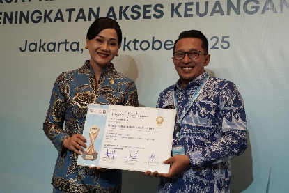 Piagam penghargaan tersebut diserahkan langsung oleh Kepala Eksekutif Pengawas Perilaku Pelaku Usaha Jasa Keuangan, Edukasi, dan Pelindungan Konsumen yang juga Anggota Dewan Komisioner Otoritas Jasa Keuangan Friderica Widyasari Dewi, Jum’at (10/10/2025) dalam acara Rapat Koordinasi Nasional (Rakornas) TPAKD Tahun 2025 di Ballroom Danarote Balai Kartini Jakarta.