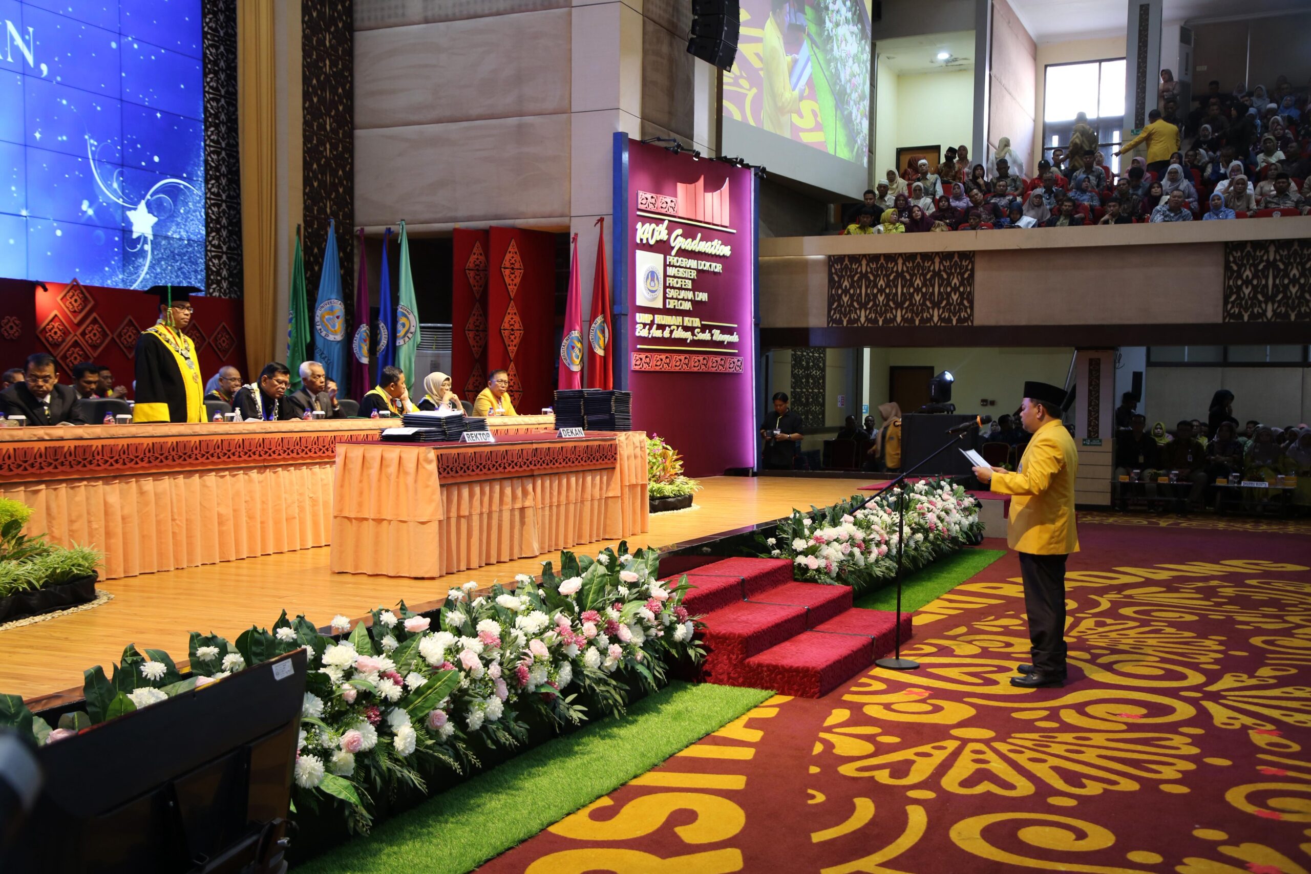 Rektor UNP, Krismadinata, Ph.D, dalam pidatonya menyampaikan apresiasi dan rasa bangga atas capaian seluruh wisudawan. Ia menegaskan bahwa dunia kerja yang akan dihadapi para lulusan kini penuh dengan tantangan disrupsi, mulai dari perkembangan artificial intelligence, big data, hingga perubahan sosial, ekonomi, dan lingkungan. Oleh karena itu, lulusan UNP dituntut untuk tidak hanya menguasai keterampilan teknis, tetapi juga memiliki karakter yang kuat.