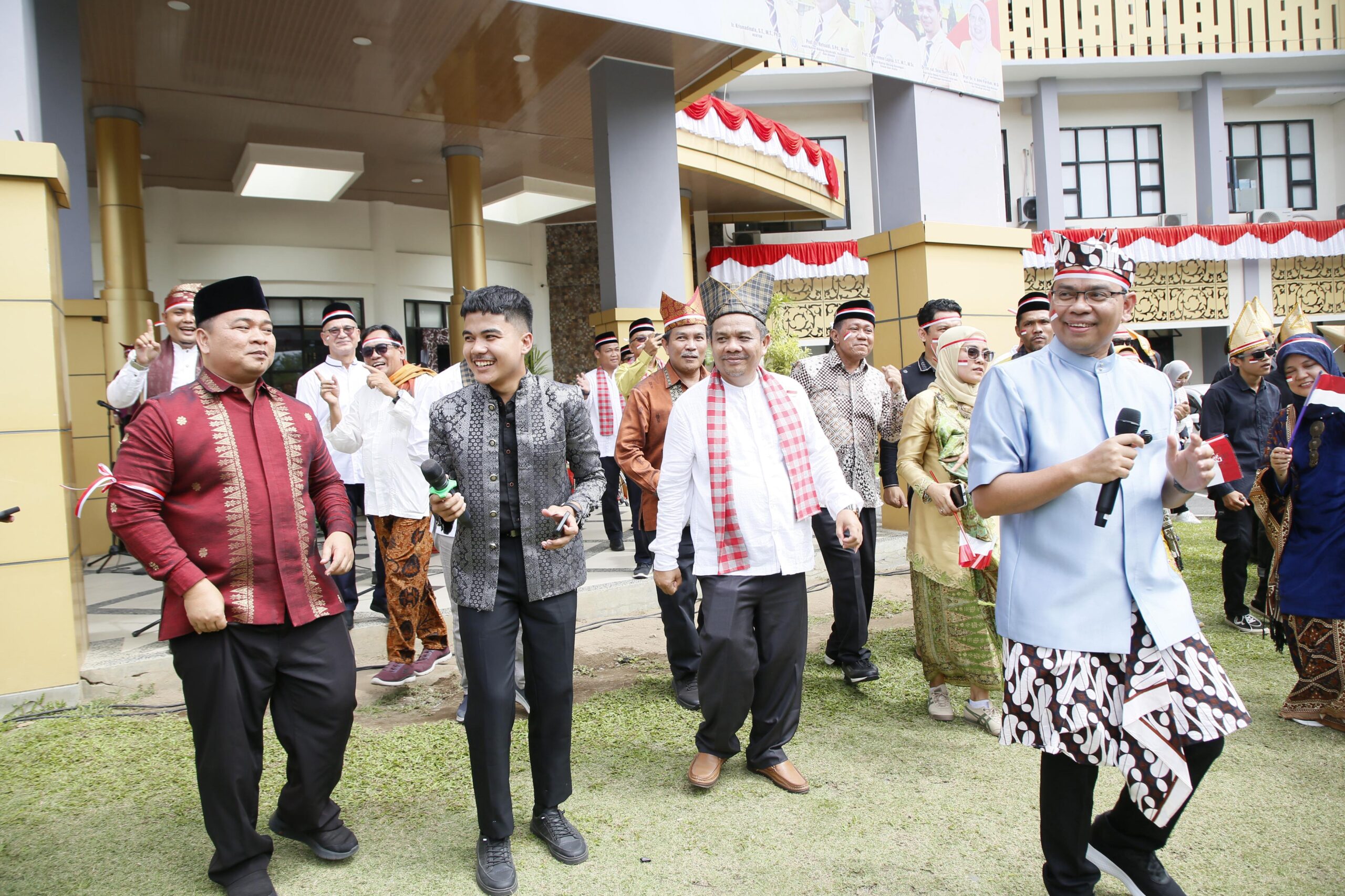 Pada momen ini sejumlah pimpinan tampil berjoget dan menyanyi bersama mahasiswa baru (maba) dalam suasana ceria dan cair dengan lagu yang lagi viral Tola Bole (Er/Humas UNP)