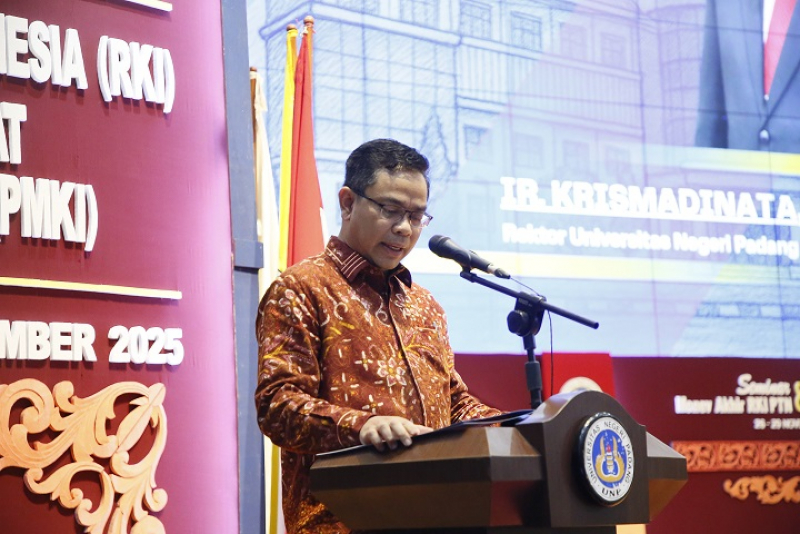 Padang,relasipublik – Rektor Universitas Negeri Padang (UNP) Krismadinata, Ph.D. Menyampaikan rasa duka cita yang mendalam atas bencana banjir dan tanah longsor yang mencakup sejumlah wilayah di Sumatera Barat, termasuk Kota Padang. Hal tersebut disampaikan saat memberikan Perayaan pada pembukaan RKI dan PMKIPTN-BH UNP Expo 2025 yang dihadiri perwakilan dari 24 PTN-BH di Indonesia, Kamis (27/11/2025), di Auditorium UNP.