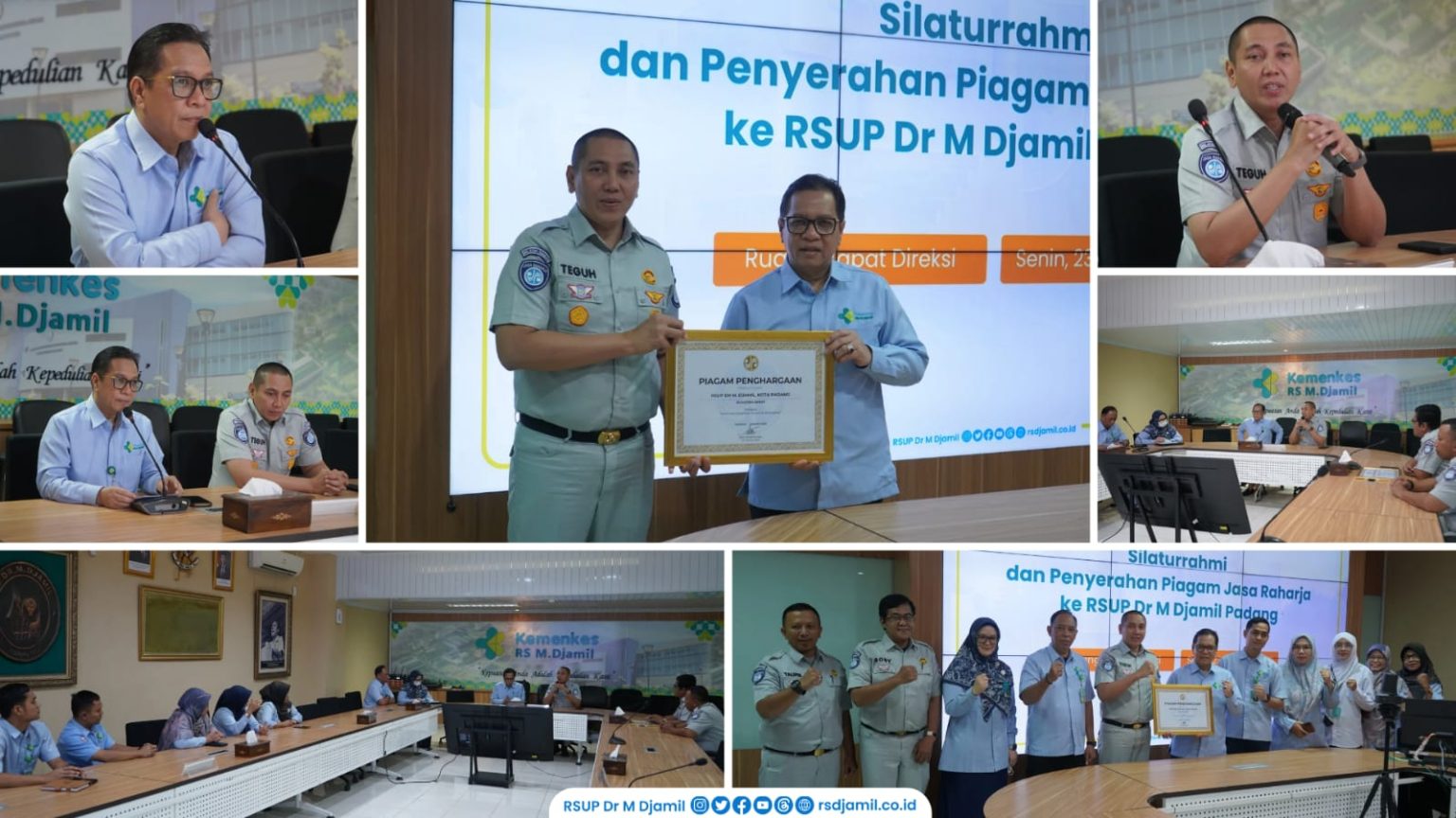 Penghargaan diserahkan oleh Kepala Kantor Wilayah PT Jasa Raharja Sumatera Barat, Teguh Afrianto, kepada Direktur Utama RSUP Dr. M. Djamil, Dr. dr. Dovy Djanas, Sp.OG, KFM, MARS, FISQua di Ruang Rapat Direksi. Dalam kesempatan tersebut, Direktur Utama didampingi Direktur SDM, Pendidikan dan Penelitian dr. Maliana, M.Kes, Direktur Perencanaan dan Keuangan Luhur Joko Prasetyo, serta jajaran manajemen terkait. Dari pihak PT Jasa Raharja, turut hadir Kasubag Administrasi Klaim Boby Laksono serta Kasubag SW dan Humas Taufik Widitomo.