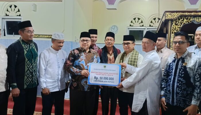Solok, relasipublik – Ketua DPRD Provinsi Sumatera Barat, Muhidi, menggelar Safari Ramadan di Masjid Nurul Yaqin, Nagari Kuncir, Kecamatan X Koto Diatas, Kabupaten Solok, Minggu (22/2/2026) malam. Dalam kunjungan tersebut, Muhidi menyerahkan sejumlah bantuan sekaligus berbuka puasa bersama masyarakat setempat.