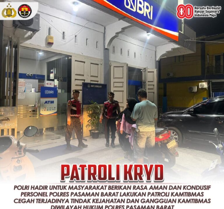 MoPasaman Barat,relasipublik – Polres Pasaman Barat menunjukkan keseriusannya dalam menjaga keamanan dan ketertiban masyarakat (kamtibmas) dengan menggelar patroli malam dan Kegiatan Rutin Yang Ditingkatkan (KRYD) secara serentak. Kegiatan ini dilaksanakan pada dini hari, 12 Oktober 2025, di seluruh wilayah hukum Polres Pasaman Barat.