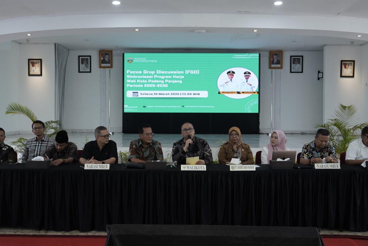 Hal tersebut disampaikan Wali Kota Hendri Arnis saat membuka Focus Group Discussion (FGD) Sinkronisasi Program Kerja Wali Kota Padang Panjang Periode 2025–2030 di Hall Lantai III Balai Kota, Selasa (10/3/2026).