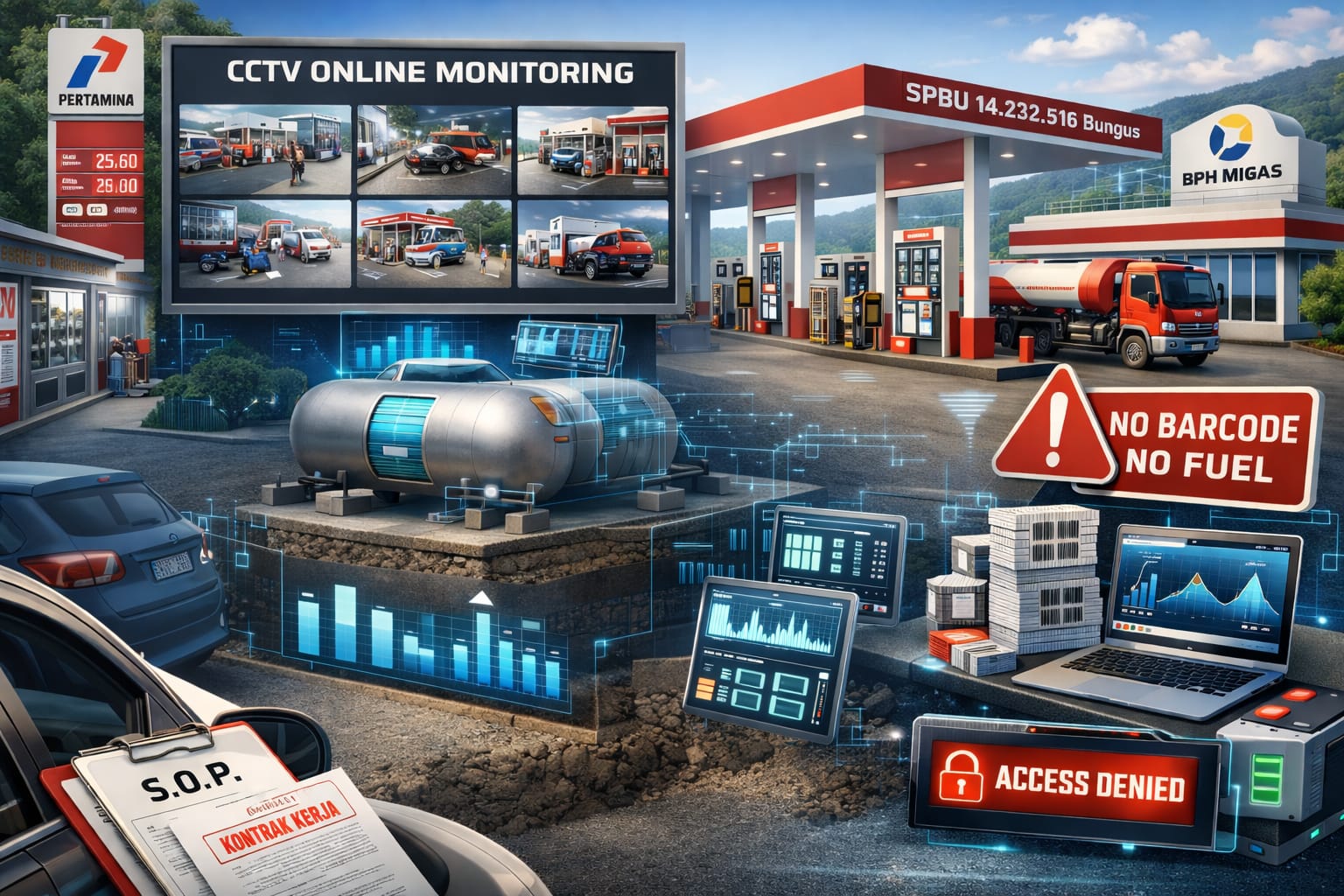 Selain itu, pengawasan juga diperkuat melalui sistem CCTV yang terhubung langsung secara daring dengan pihak BPH Migas dan Pertamina. Hal ini memungkinkan pemantauan aktivitas di SPBU secara real-time.