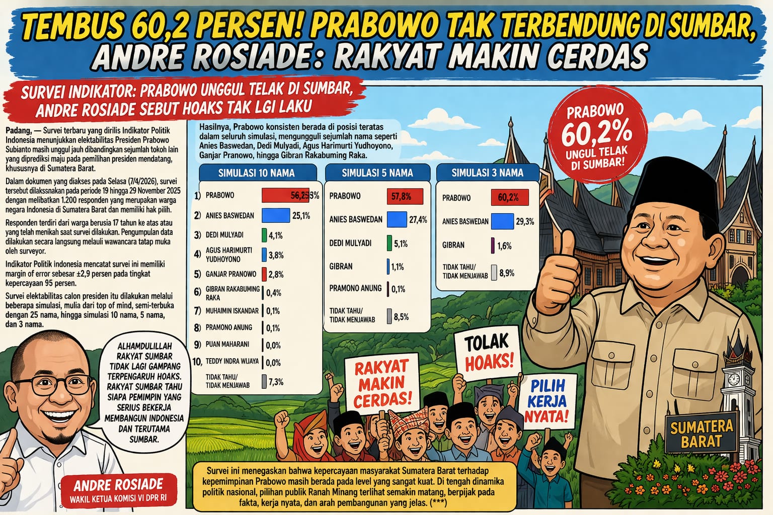 Survei Indikator: Prabowo Unggul Telak di Sumbar, Andre Rosiade Sebut Hoaks Tak Lagi Laku