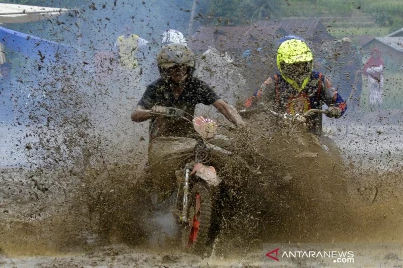 Suasana di lokasi berlangsung penuh ketegangan. Deru mesin kendaraan meraung keras, disambut sorakan ratusan penonton yang memadati area lintasan.