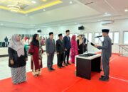 Tim Penilai yang diketuai Kepala Bidang Kelembagaan Masyarakat dan Adat DPMD, Quartita Evari Hamdiana, SKM, MM disambut Penjabat (Pj) Sekretaris Daerah Kota, Dr. Winarno, ME, Ketua Bidang I TP-PKK Kota, dr. Fitriyana Winarno, Sp.A, M.Biomed, Kepala Dinas Sosial Pengendalian Penduduk, Keluarga Berencana, Pemberdayaan Perempuan dan Perlindungan Anak (DSPPKBPPPA), Drs. Osman Bin Nur, M.Si.